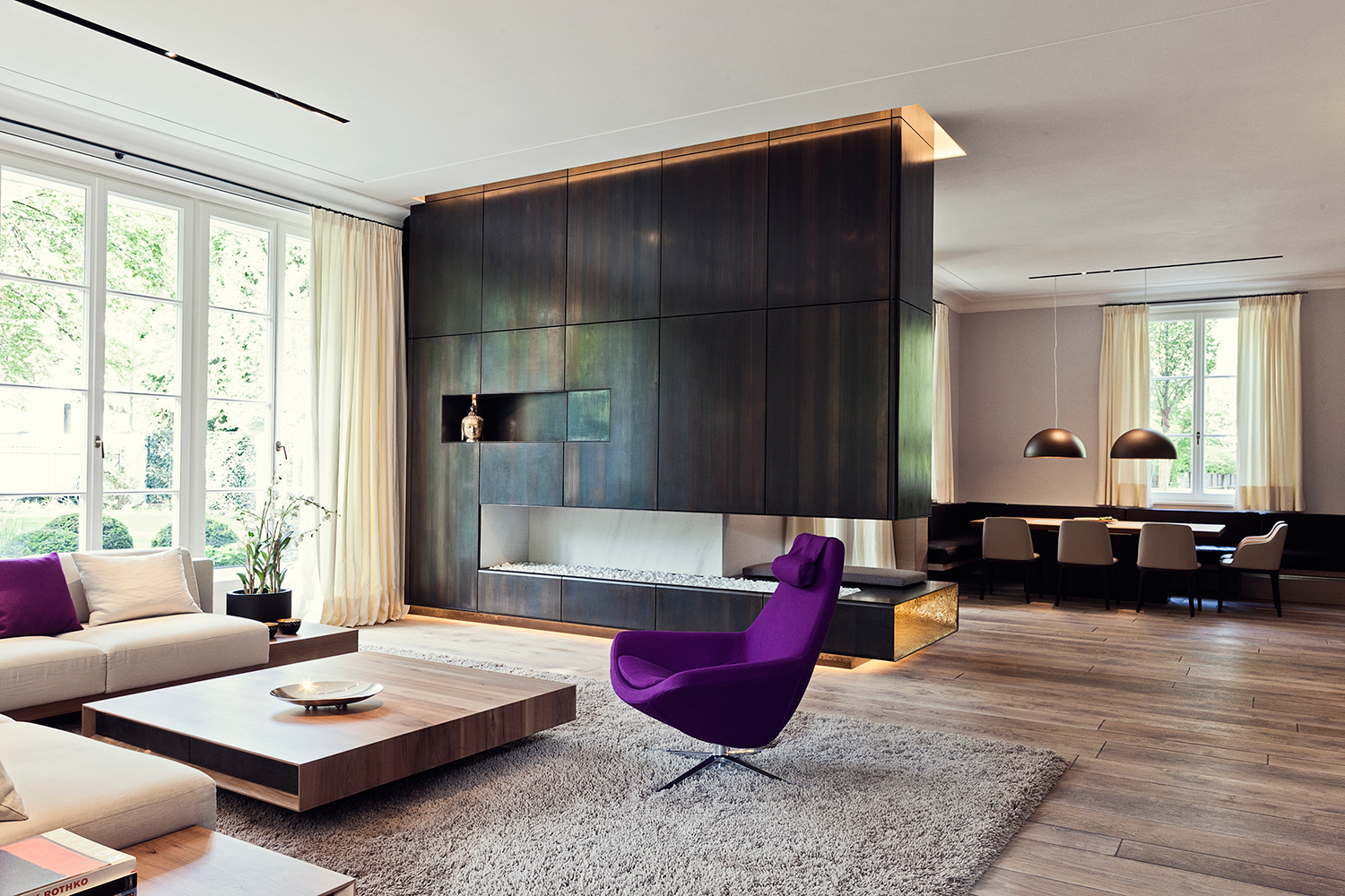 «Вообще выбор компаньонов зависит от вашей интерьерной задачи. Для спокойного комфортного интерьера подойдет сочетание фиолетового с серыми оттенками, скорее более глубокими и грязными, — они придадут фиолетовому большую глубину и значимость. При этом серые и фиолетовые оттенки в интерьере должны обязательно уравновешиваться теплыми тонами, но не соседними, а дополняющими. К примеру, серые стены и фиолетовые шторы или мебель могут быть визуально смягчены теплым оттенком доски для пола и мебелью натуральных оттенков дерева. Следует избегать создания интерьера тон в тон, в котором будет слишком холодно и неуютно. Для более модного интерьера к этой цветовой схеме можно добавить лайм или шартрез. Тогда получится интересный контраст, но он не должен быть опошлен большим количеством элементов этих активных цветов, и желательно они должны быть представлены на разных поверхностях», — объясняет дизайнер Майк Шилов.