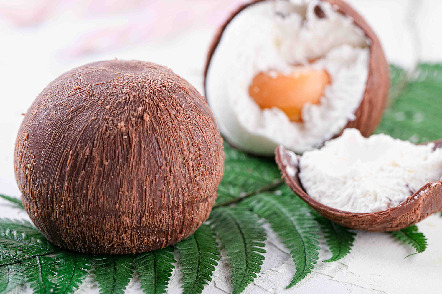 В новом кафе создателей бара «Герои» и бистро J’Pan — Touch of Matcha — сладкое меню разработали «король эклеров» Саба Джанджгава и шеф-кондитер J’Pan Анастасия Беляева. Следуя флекситарианской и веганской философии места, они придумали муссовый десерт «кокос-папайя», в точности повторяющий форму кокоса. Скорлупа кокоса сделана из темного шоколада, мякоть — из кокосового мусса. В сердцевине — компот из папайи. В десерте нет компонентов животного происхождения, а белый сахар заменили кокосовым.