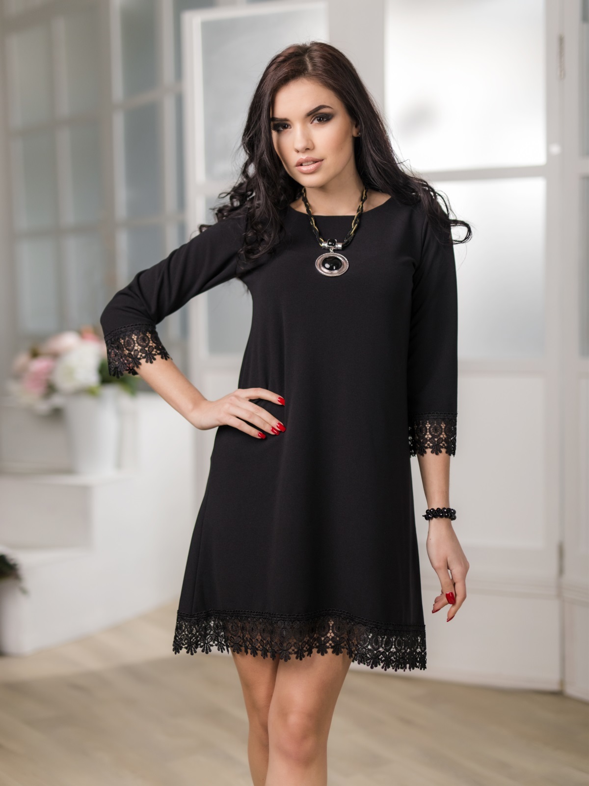Элегантно будет смотреться черное платье с белым кружевом. С помощью такой игры цветов образ становится совсем другим. С белым кружевом черное платье выглядит очень нарядно, что позволяет надеть его на пышные торжества. Маленькое черное платье — это классика. А если украсить его кружевами, то это будет уже совсем новая классика! Будьте уверенной и сногсшибательной в маленьком черном кружевном платье! Такой наряд будет смотреться очень эффектно, особенно если у его обладательницы прекрасная точеная фигура.
