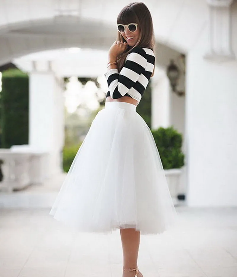 - Пачка (пышная). В тренде у любительниц ретро-стиля и женственных романтичных образов. Французская длина (чуть ниже колена) особенно популярна. Туфли-лодочки и легкое блузки подчеркнут лук.